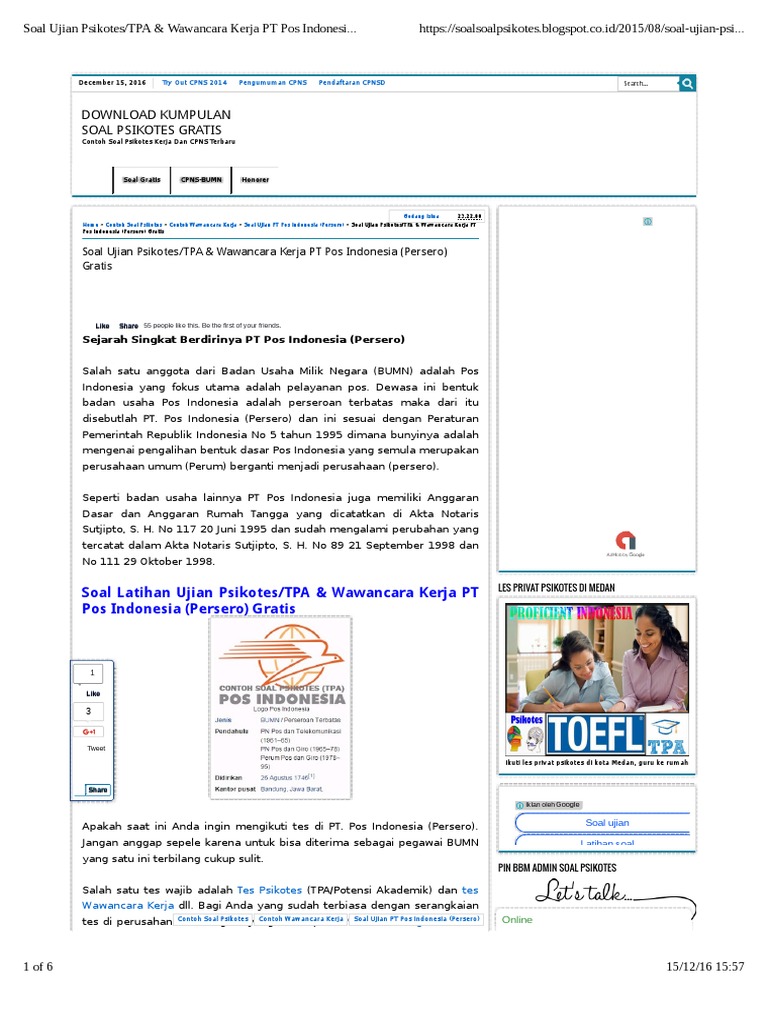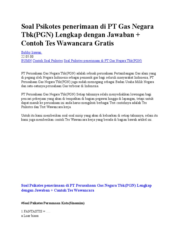 Soal Psikotes Penerimaan Di Pt Gas Negar Doc