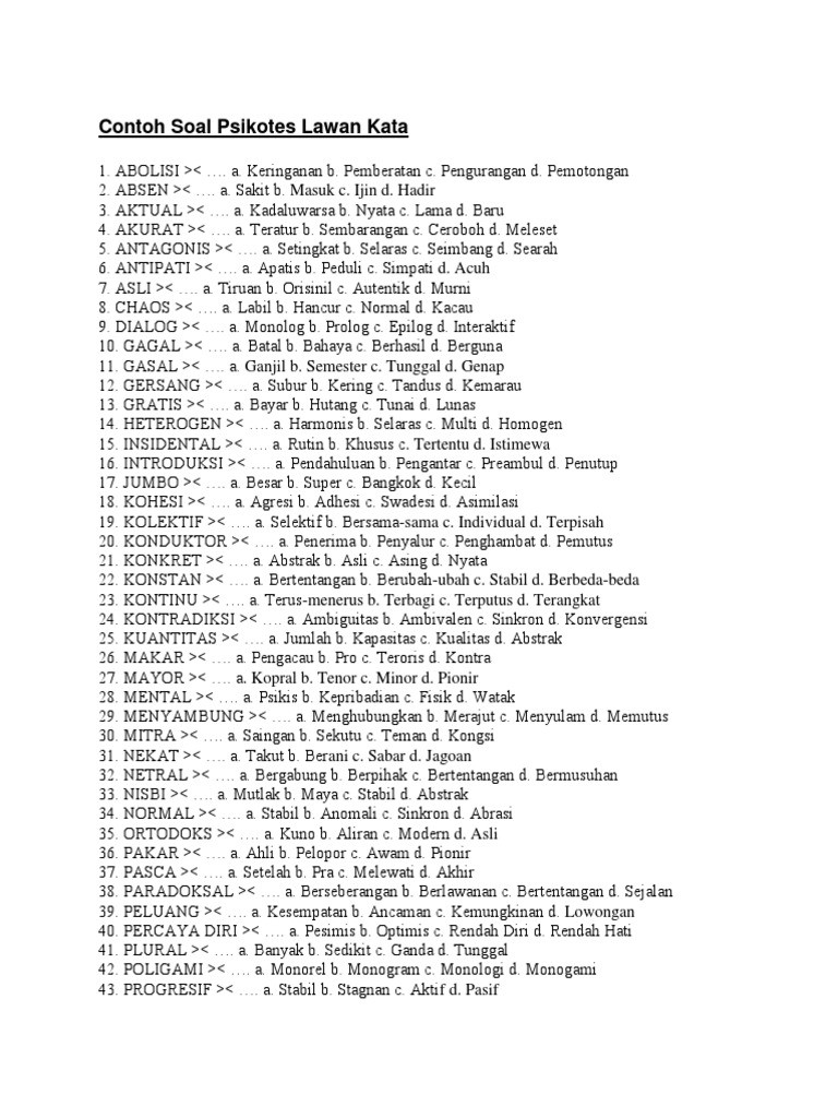 Contoh Soal Psikotes Lawan Kata