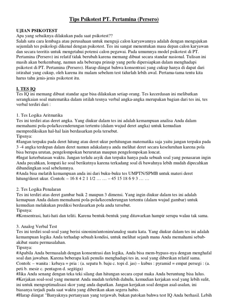 Tips Lulus Dan Contoh Soal Psikotes Otomotif Zone