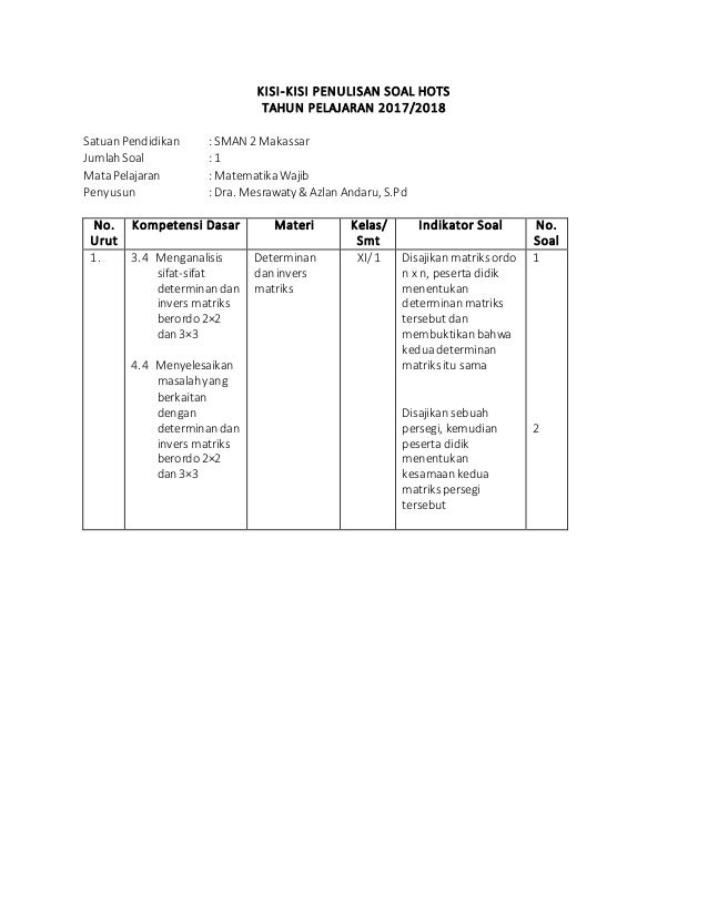 Contoh file soal uts lengkap kelas 1 6 sdmi semua mata pelajaran 20162017 berikut ini adalah kumpulan dari berbagi sumber tentang contoh soal hots matematika matriks yang bisa gunakan untuk bank soaldownloadsd dan diunduh secara gratis dengan menekan tombol download biru dibawah ini. Meskipun demikian latihan soal tentang matriks tetap menjadi kunci utama untuk memahami materi tersebut.