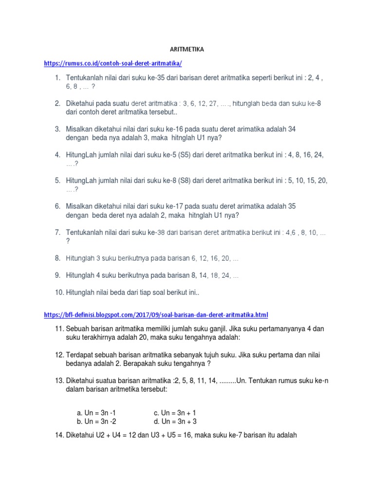 35 Contoh Soal Barisan Deret Aritmatika Pilihan Ganda Pembahasan