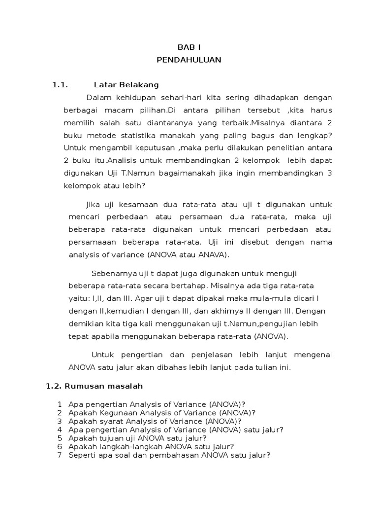 Doc Analisis Variansi Anava Analysis Of Variances Anova