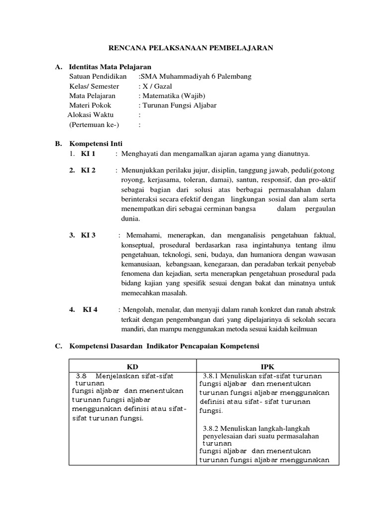 Rpp Turunan Fungsi Aljabar