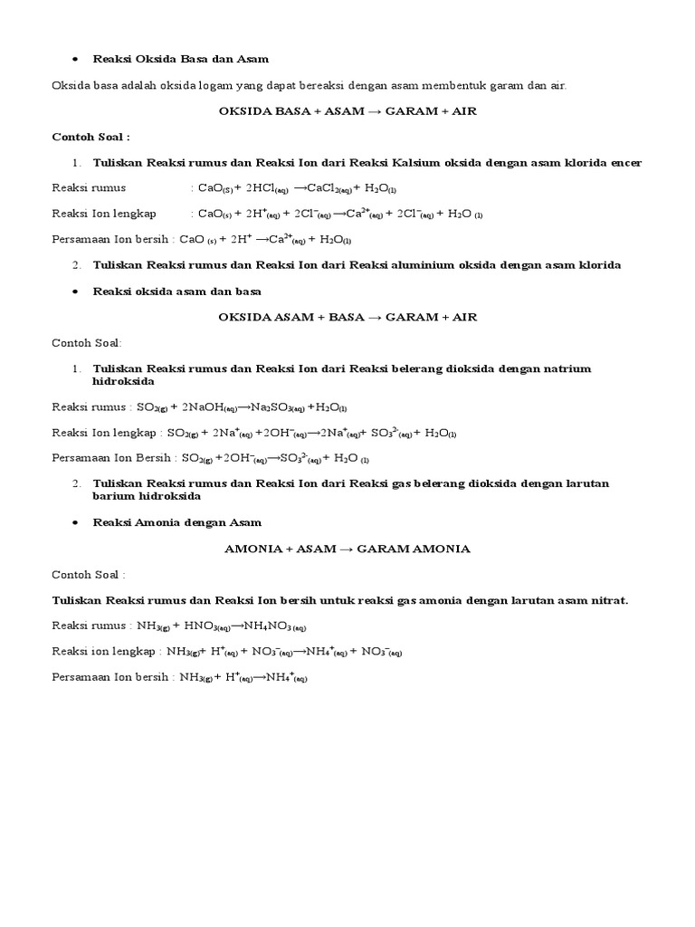 Reaksi Oksida Basa Dan Asam
