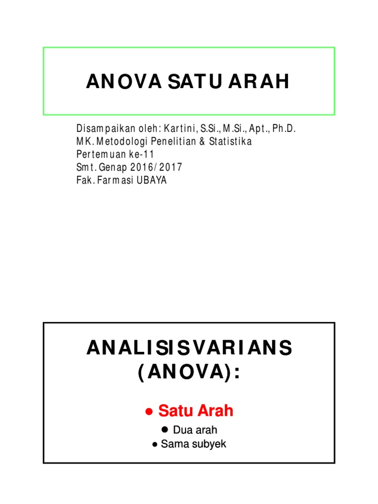 Pdf Analisis Variansi Satu Arah Futari Irianto Academia Edu