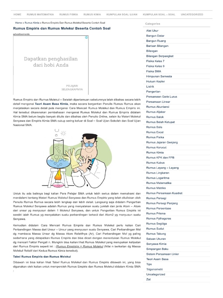 Rumus Empiris Dan Rumus Molekul Beserta Contoh Soal Rumus Rumus