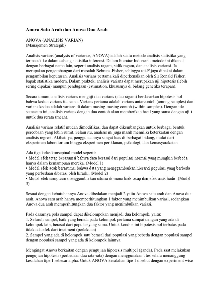 Pdf Analisis Variansi Satu Arah Futari Irianto Academia Edu