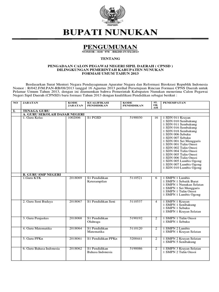 Pengumuman Nomor 813 245 Bkd Pdf Free Download