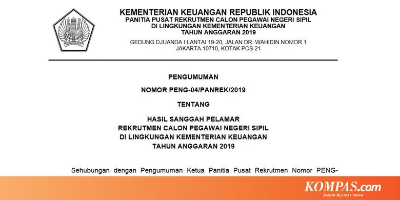 Kemenkeu Umumkan Hasil Sanggah Administrasi Cpns 2019 Cek Di Link