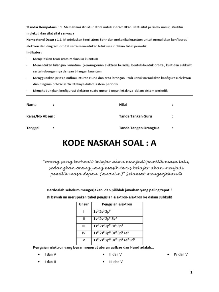 10 Contoh Soal Bilangan Kuantum Dan Bentuk Orbital Disertai