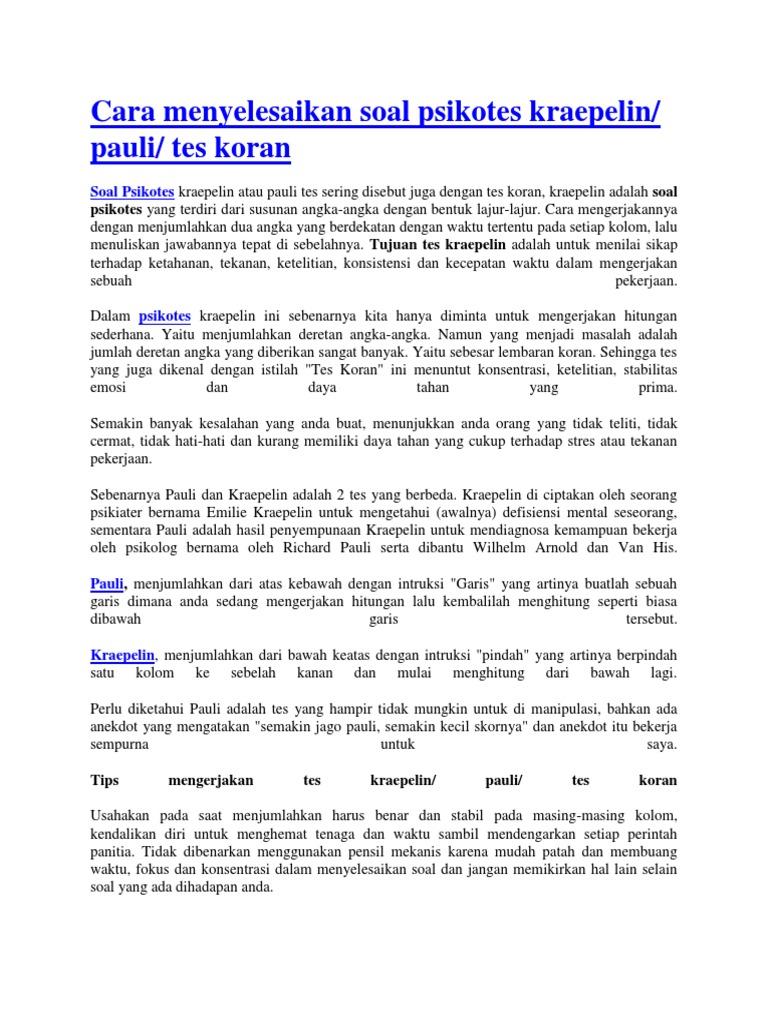 Pauli Dan Kraepelin Doc Books Reader Contoh Soal Tes Soal