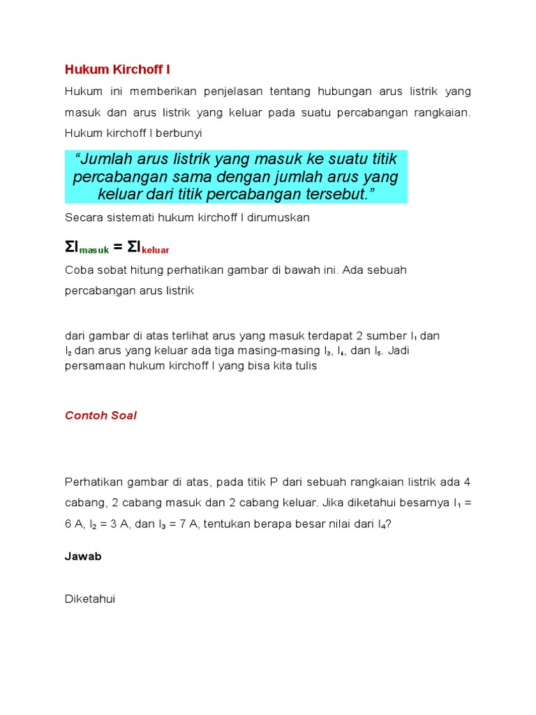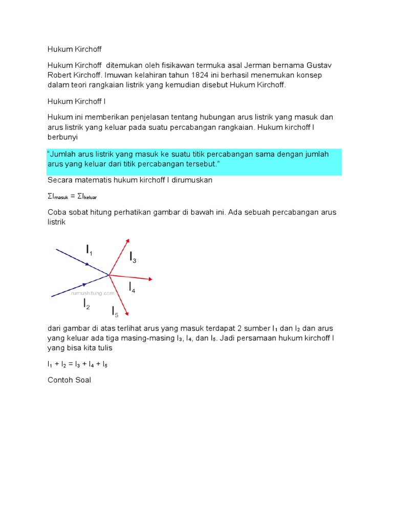 Rumus Hukum Kirchoff I Dan Contoh Soal Hukum I Kirchoff Bacajuga Com
