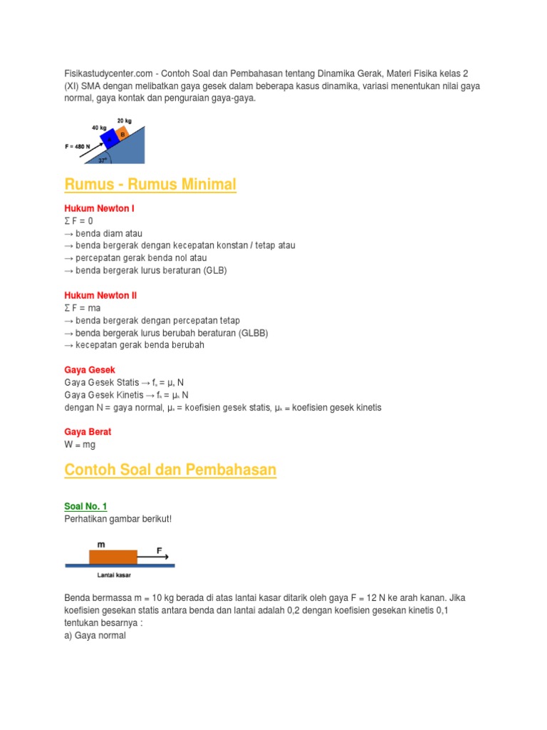 Contoh Soal Gaya Gesek Pada Bidang Miring Rumusrumus Com