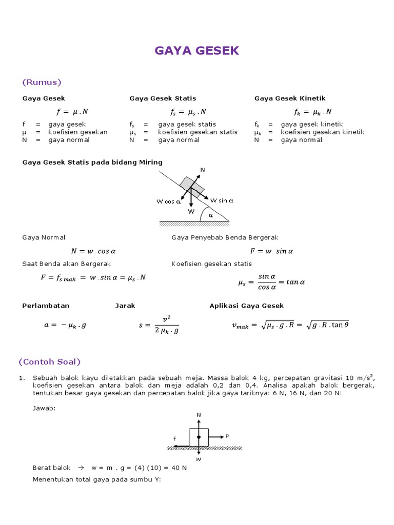 Selamat belajar dan semoga bisa paham. Teori macam sifat dan contoh soal. Gaya gesek merupakan gaya yang melawan gerak benda pada suatu permukaan yang terjadi akibat oleh dua permukaan benda yang bersentuhan.