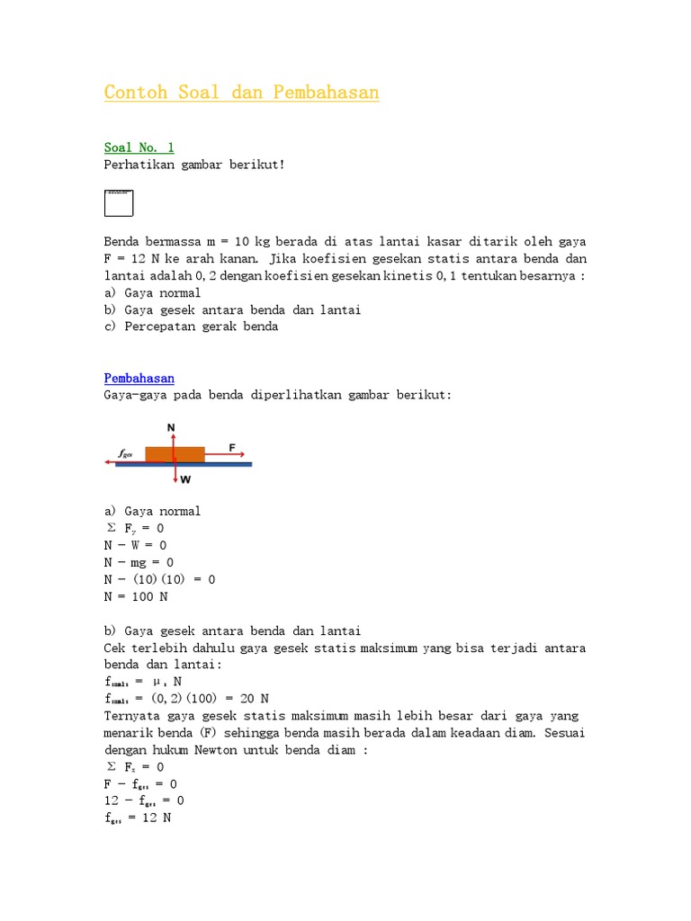 Contoh Soal Gaya Normal Gaya Gesek Dan Pembahasan Soalfismat Com
