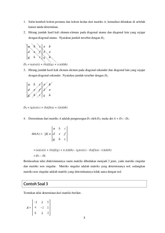 Menghitung Determinan Matriks 3x3 Dengan Metode Sarrus Ilmu Hitung