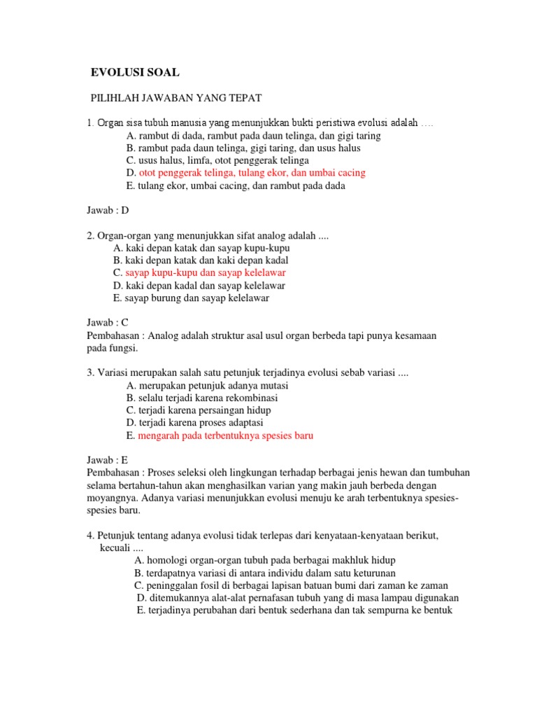 40 Soal Pilihan Ganda Tentang Evolusi Kelas 12 Dan Pembahasan