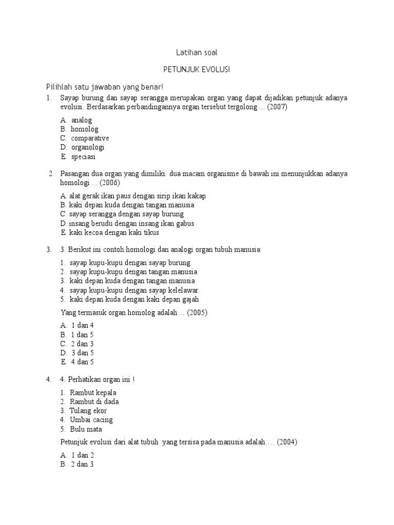 Catatan Prestasi Guru Biologi Latihan Soal Petunjuk Evolusi