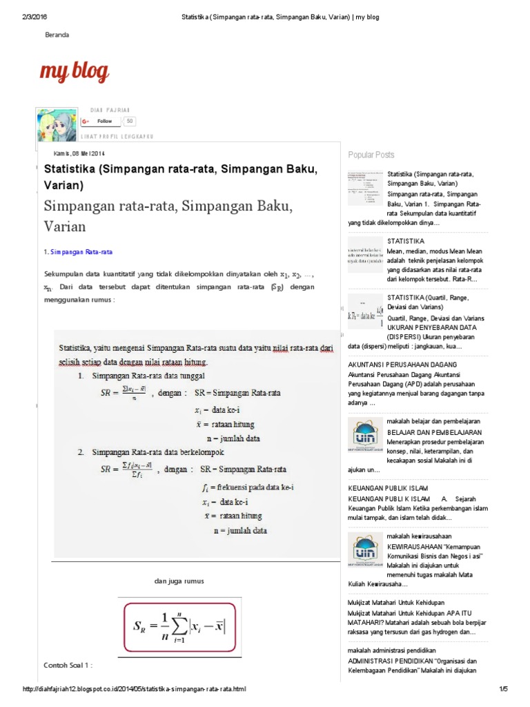 Statistika Simpangan Rata Rata Simpangan Baku Varian My Blog
