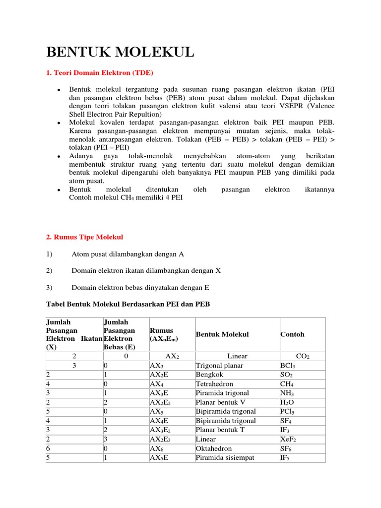 Bentuk Molekul Teori Domain Elektron Teori Ikatan Valensi