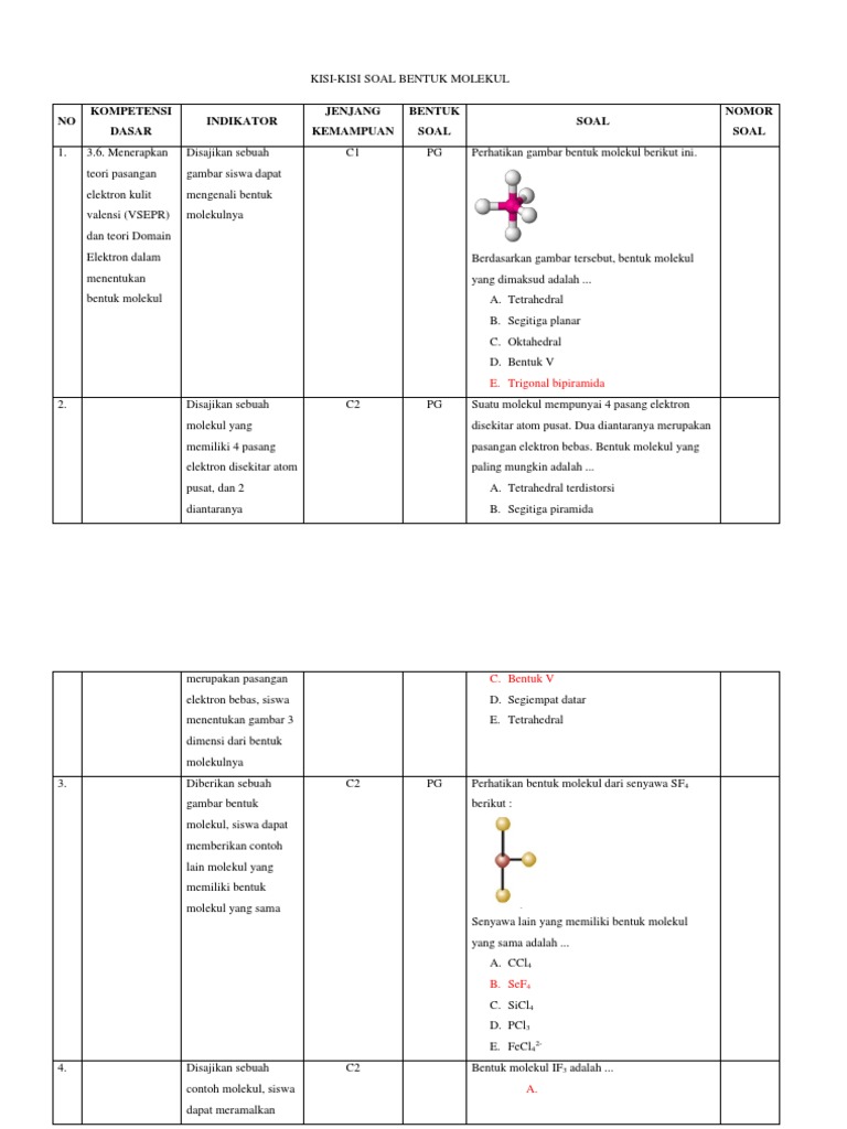 Kisi Kisi Soal Bentuk Molekul Kelas X Kd 3 6