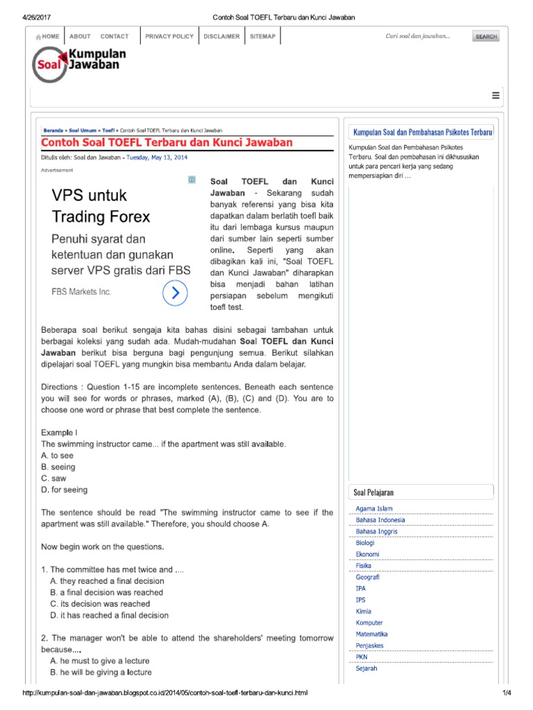 Contoh Soal Toefl Terbaru Dan Kunci Jawaban