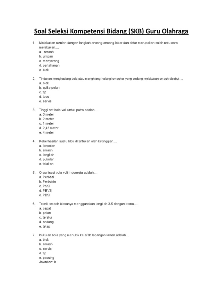 Contoh soal tkb guru olahraga. Berikut ini kami sajikan link download contoh soal tkb guru sd soal tes cpns guru matematika soal tes cpns guru contoh soal tkb guru matematika soal cpns guru sd pdf tes kemampuan bidang keguruan kependidikan pedagogik download soal tkb guru pdf soal tes kompetensi bidang pendidikan. Contoh teks diskusi setelah sebelumnya contohsoalcoid telah menerangkan materi tentang contoh teks editorial maka pada pertemuan kali ini akan kembali contohsoalcoid sampaikan materi tentang contoh teks diskusi intertnet sampah olahraga banjir dan hp. Tes seleksi kompetensi bidang merupakan suatu tes yang dikhususkan terhadap jurusan yang akan di ambil oleh pelamar.