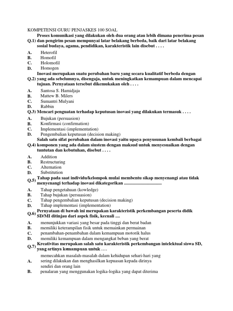 Contoh Soal Skb Guru Penjaskes 2018 Dan Jawabannya