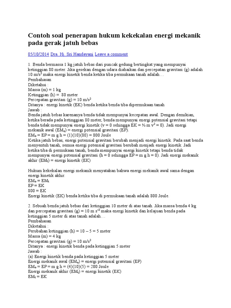 Contoh Soal Ujian Gerak Jatuh Bebas Ardra Biz