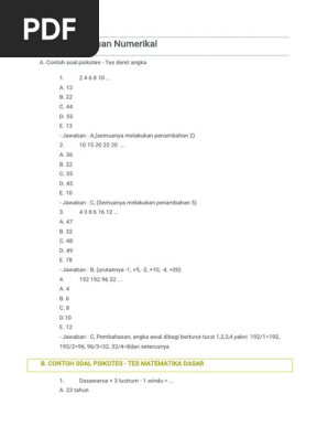 Contoh soal psikotes numerik dan jawabannya. Kali ini kita bakal bahas cara kerja soal penalaran yang biasa muncul saat psikotes sbmptn stan dan stis. Bahkan contoh soal psikotes dan kunci jawaban tidak hanya dipakai pada ujian seleksi masuk perusahaan namun sudah dipakai pada seleksi tes masuk perguruan tinggi negeri s1 s2 dan s3 tes penerimaan cpns dan bumn tes kenaikan jabatan tes rekrutmen karyawan swasta dan tes rekrutmen perusahaan asing. Baris dan deret yang muncul di penalaran numerik sendiri banyak banget.