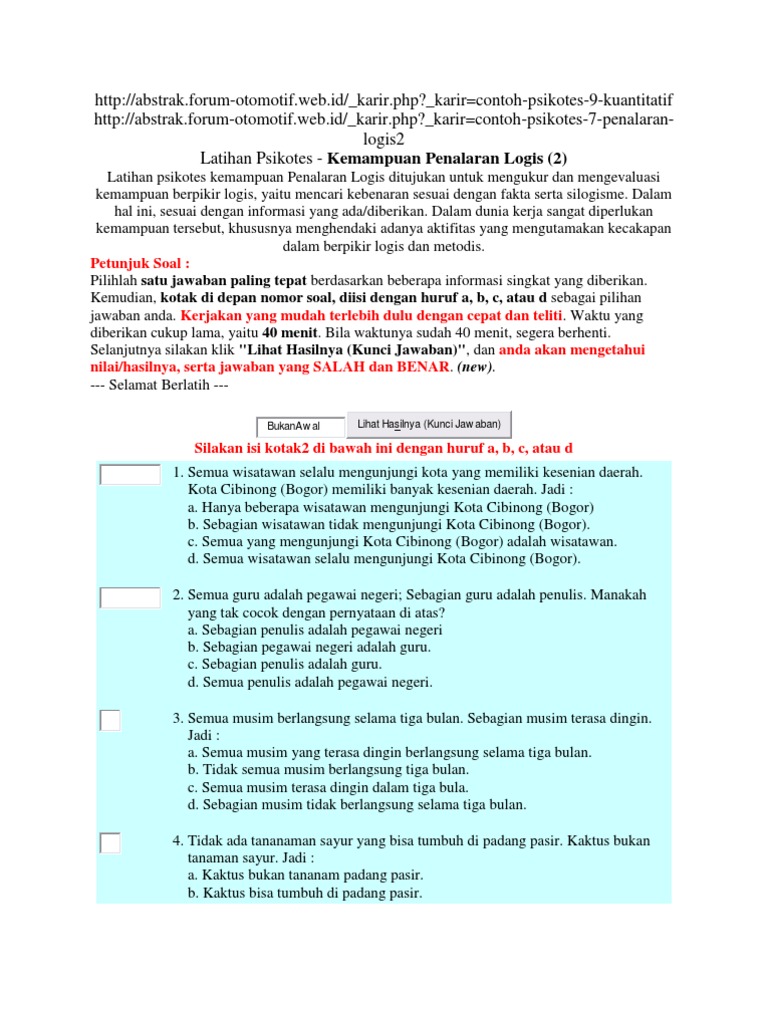 Soal Terbaru 2017 Download Contoh Soal Psikotes Logika Penalaran Pdf