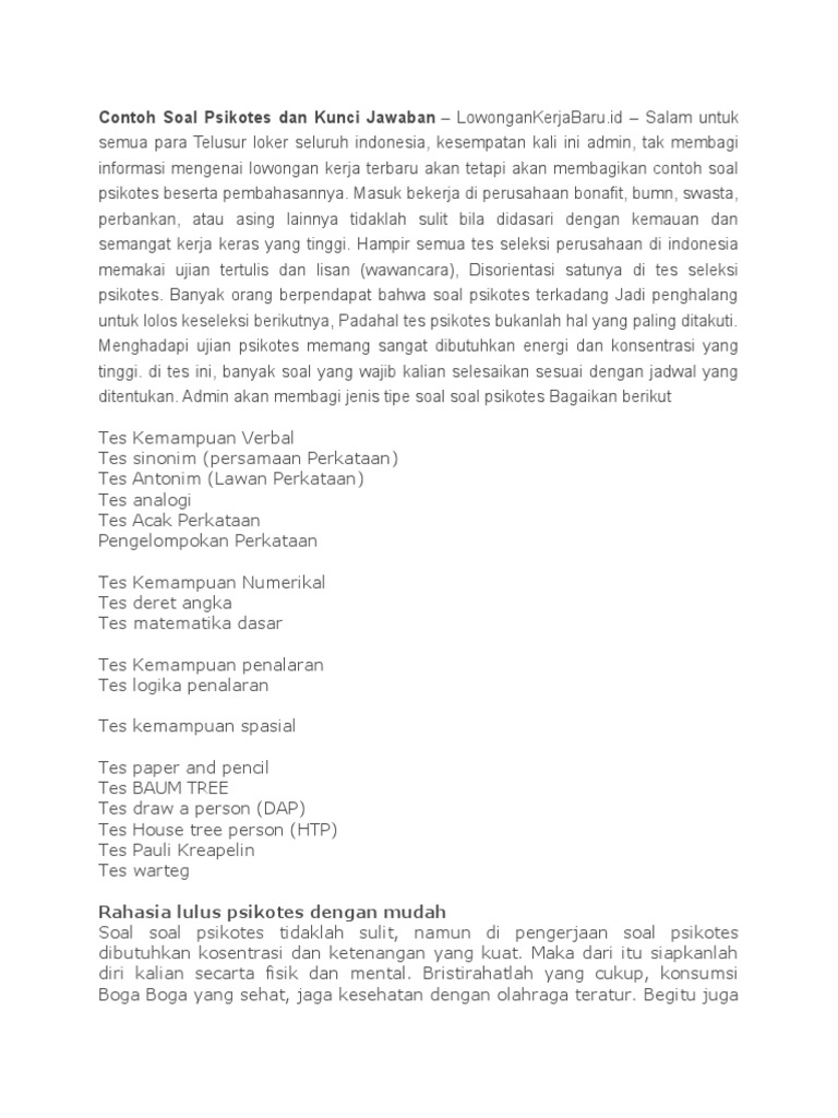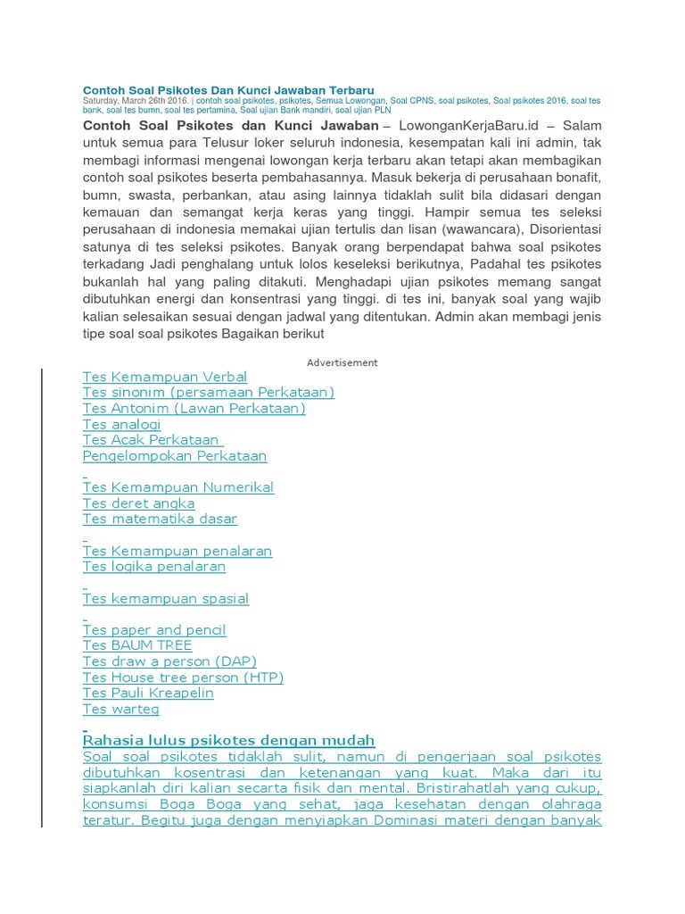 Pdf Contoh Soal Psikotes Psikologi Melamar Kerja Dan Jawaban Pdf