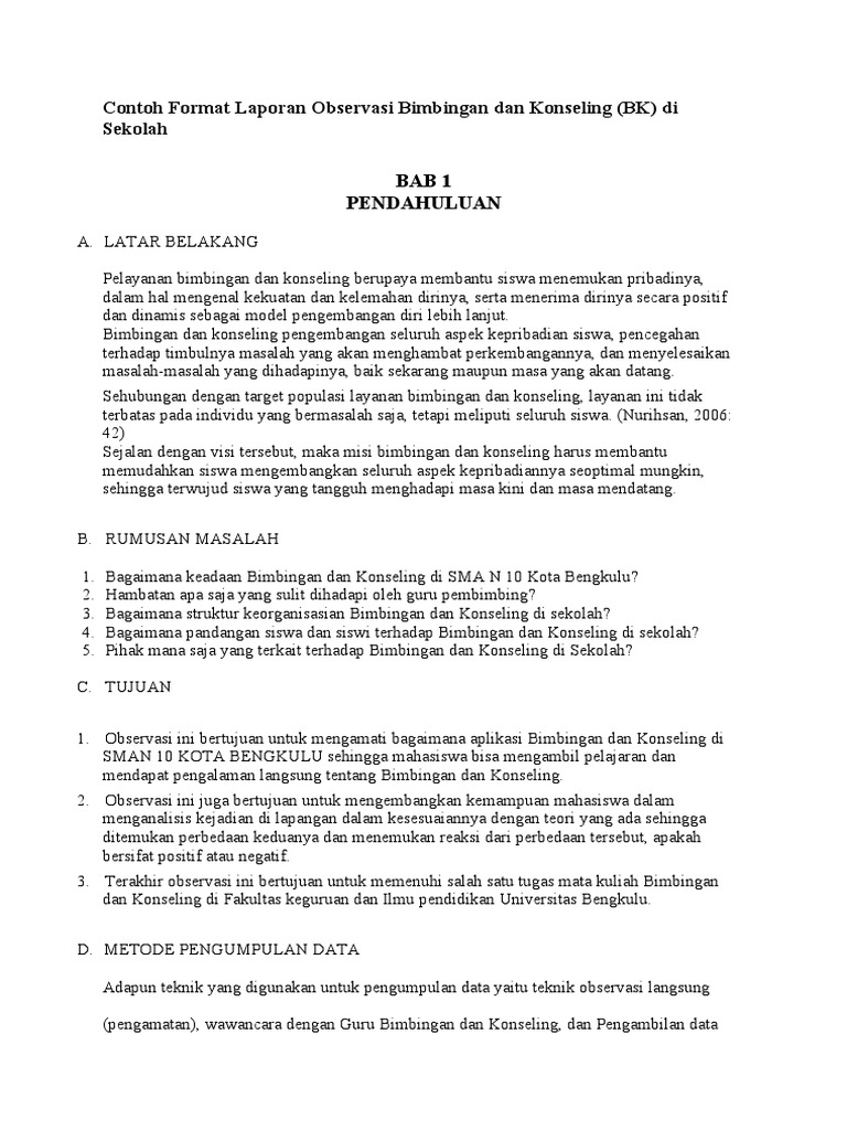 Contoh Format Laporan Observasi Bimbingan Dan Konseling