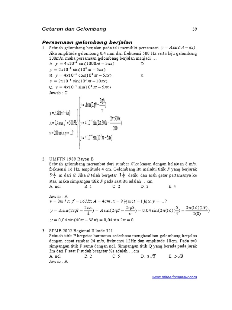 Contoh Soal Gelombang Berjalan Dan Stasioner Un Sma Pdf Dan