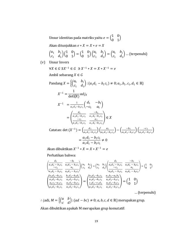 Soal nomor 15 soal osn pertamina tahun 2010 babak penyisihan tingkat provinsi semigrup adalah himpunan tak kosong dengan operasi biner yang memenuhi sifat tertutup dan asosiatif sedangkan monoid adalah semigrup dengan identitas. Soal no1 un 2009 diketahui matriks a dan b jika a adalah transpose matriks a dan ax b a maka determinan matriks x adalah. Contoh file soal uts lengkap kelas 1 6 sdmi semua mata pelajaran 20162017 berikut ini adalah kumpulan dari berbagi sumber tentang contoh soal grup matriks yang bisa gunakan untuk bank soaldownloadsd dan diunduh secara gratis dengan menekan tombol download biru dibawah ini.