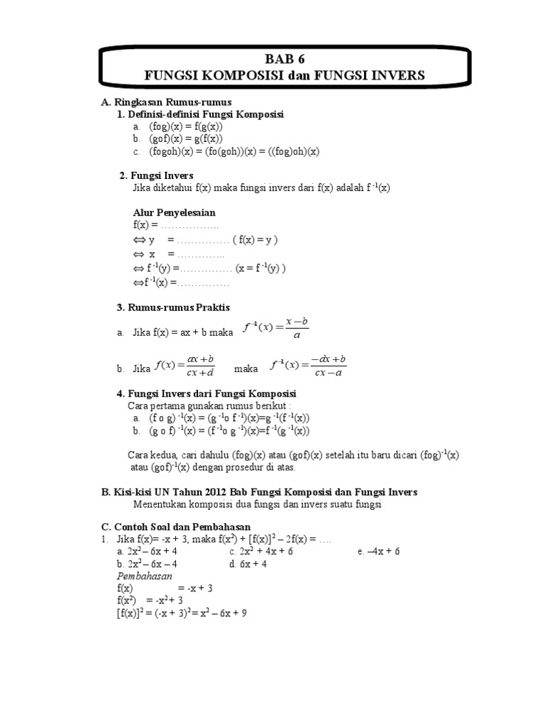 Rumus Fungsi Invers Kuadrat Komposisi Dan Contoh Soal