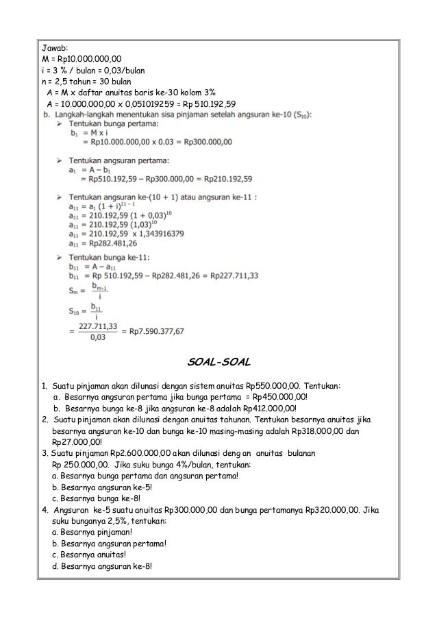 Contoh Soal Anuitas Dengan Pembahasannya Dan Jawabannya