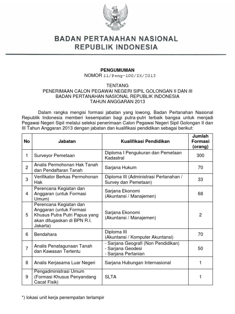 Pengumuman pendaftaran online cpns bpn 2017 formasi cpns bpn 2017. Serta kumpulan contoh soal cpns.