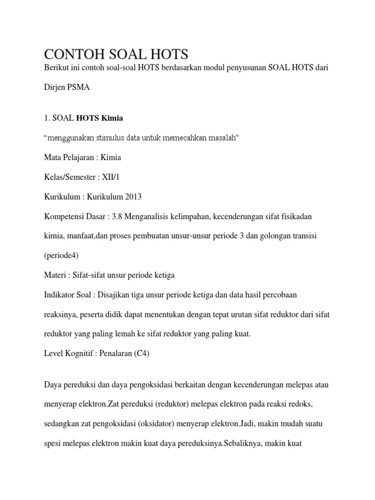 Contoh Soal Hots Ipa Smp Dan Pembahasannya Pdf Kumpulan Soal