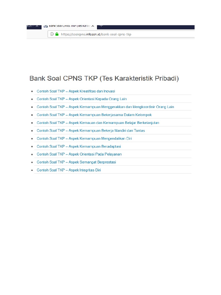 Contoh Soal Tes Karakteristik Pribadi Cpns 2018