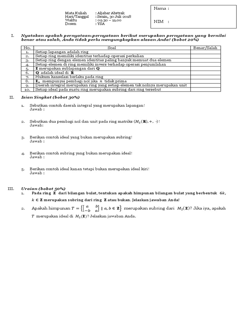 Soal Dan Pembahasan Uas Struktur Aljabar Teori Grup Tahun