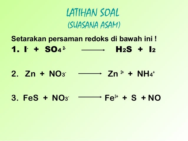 Download contoh soal asam basa dalam bentuk pdf klik disini. Penyetaraaan reaksi redoks metode setengah reaksi dapat berlangsung dalam suasana asam maupun basa. Penyetaraan reaksi dalam suasana basa bisa dikerjakan dg menambahkan h2o pada yang kelebihan o seperti yang saudara pelajari dan bila suasana asam tambahkan h2o pada sisi yang kekurangan o.