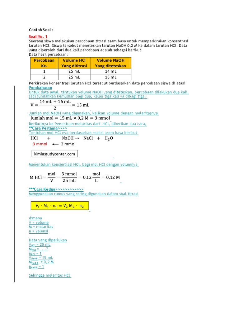 Contoh soal titrasi asam basa dan pembahasan. Latihan contoh soal dan jawaban larutan asam basa. 1 tulis persamaan. Soal dan pembahasan sistem koloid apr 11.