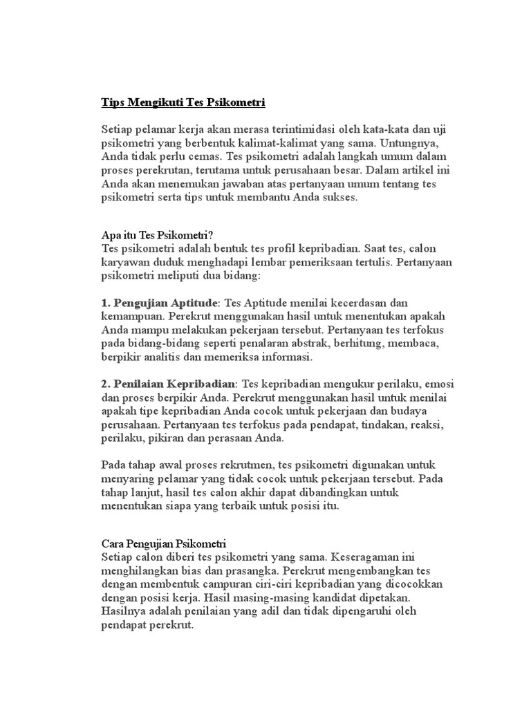 Contoh Soal Psikotes Masuk Kerja Cpns Bumn Swasta Dan Sbmptn
