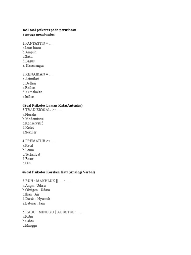 Contoh soal psikotes kerja dan cpns terbaru. Contoh soal psikotes kerja. Memberikan kesempatan yang sama kepada semua orang.