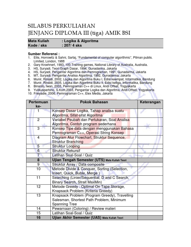 Contoh soal her logika dan algoritma bsi. Contoh soal uas mata kuliah logika dan algoritma. Soal soal uas logika dan algoritma bsi semester 1 permisi agan agan. Yang ingin melihat contoh makalh program yang dibuat dapat download di link ini.