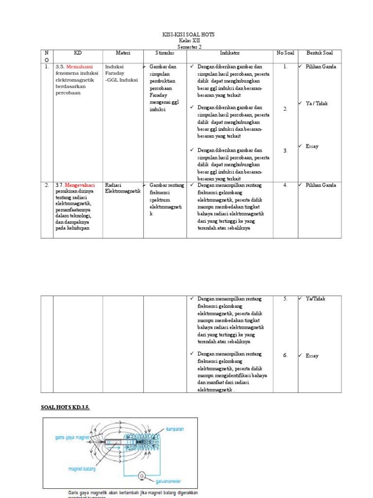 Contoh Kisi Kisi Soal Hots Fisika Docx
