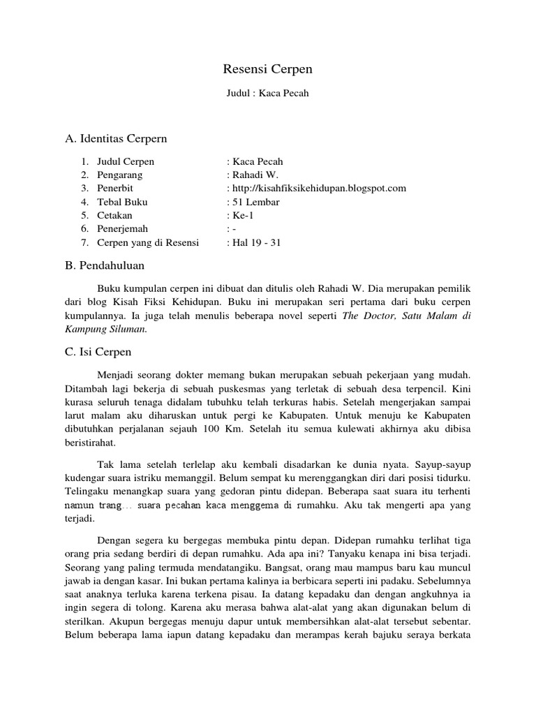 D pengarangn menceritakan secara mendetail karya cerpennya. Contoh resensi pada pertemuan sebelumnya dimana contohsoalcoid telah menerangkan materi tentang contoh cerpen maka kembali alam perjumpaan kali ini akan contohsoalcoid sampaikan secara detail pembahasan materi tentang contoh resensi novel buku non fiksi fiksi dan cerpen. Sobat yang ingin lebih jelas memahami resensi buku kita akan menyertakan contoh contoh resensi.