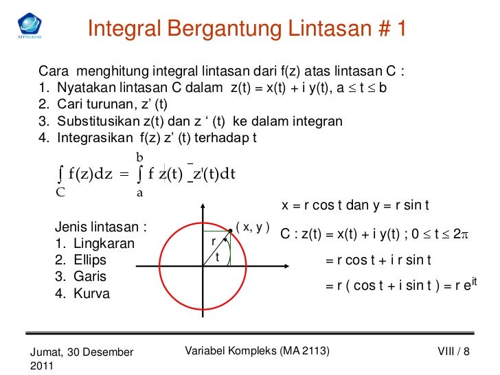 Menurut akibat teorema cauchy goursat maka nilai integral tidak bergantung pada lintasan. Compiled by pramudjono masih kurang jelas. Metode substitusi juga tidak akan bisa mejadi solusi untuk menemukan hasil integral dari soal yang di berikan di atas.