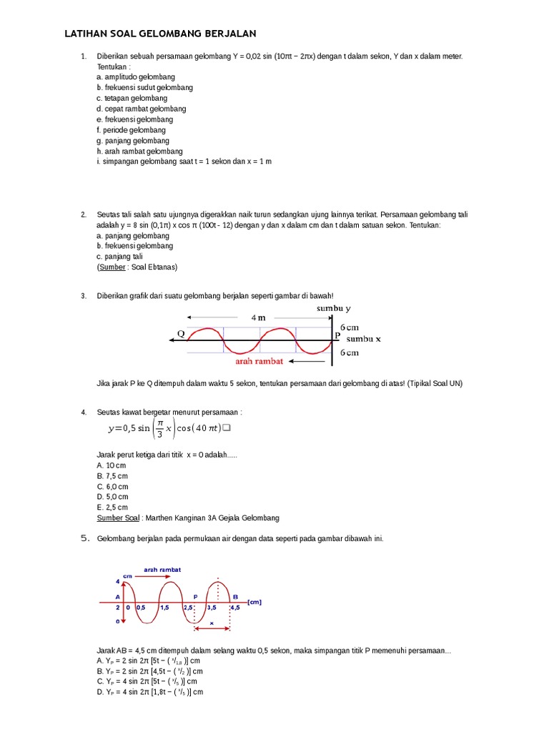 Gelombang Berjalan Contoh Soal Un Gurumuda Net